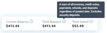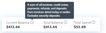 - Total Balance: inclusive of all invoices, credit notes, and payments, regardless of date—past, present, or future.