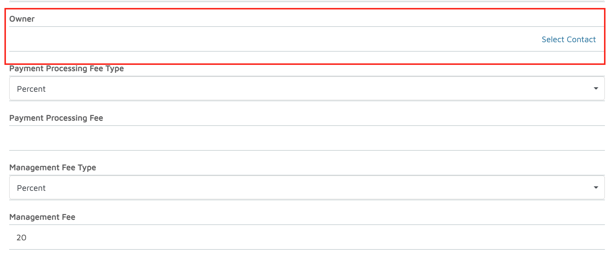 - Management Fee Type – select Flat Fee or Percentage and set the amount.