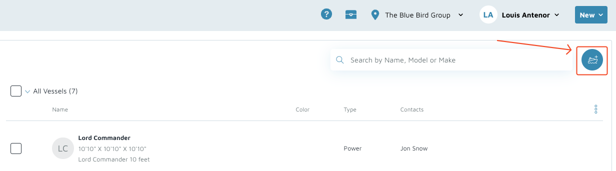 - On the left-side menu, click on Contacts & Vessels > Vessels.