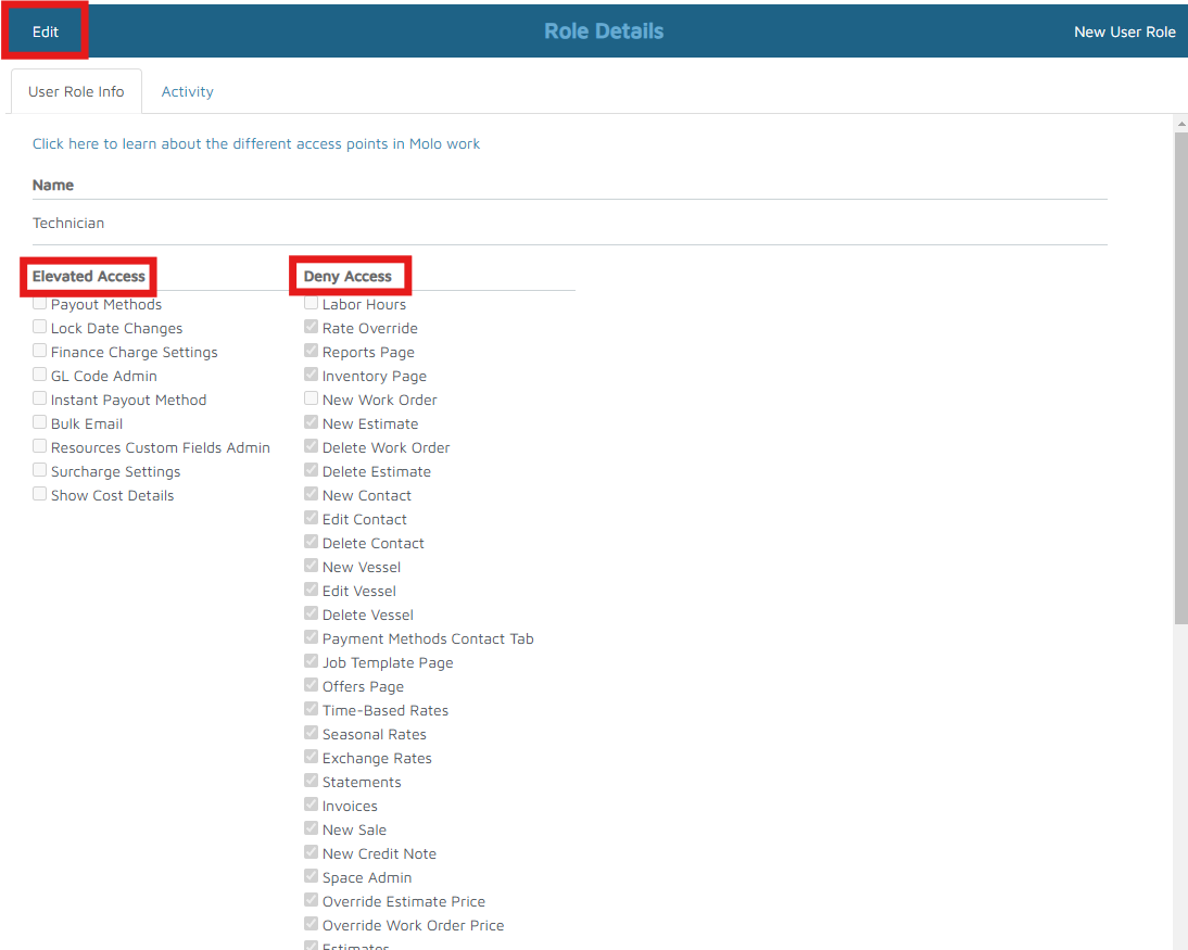 - View all access granted under Elevated Access and all restrictions listed under Deny Access.