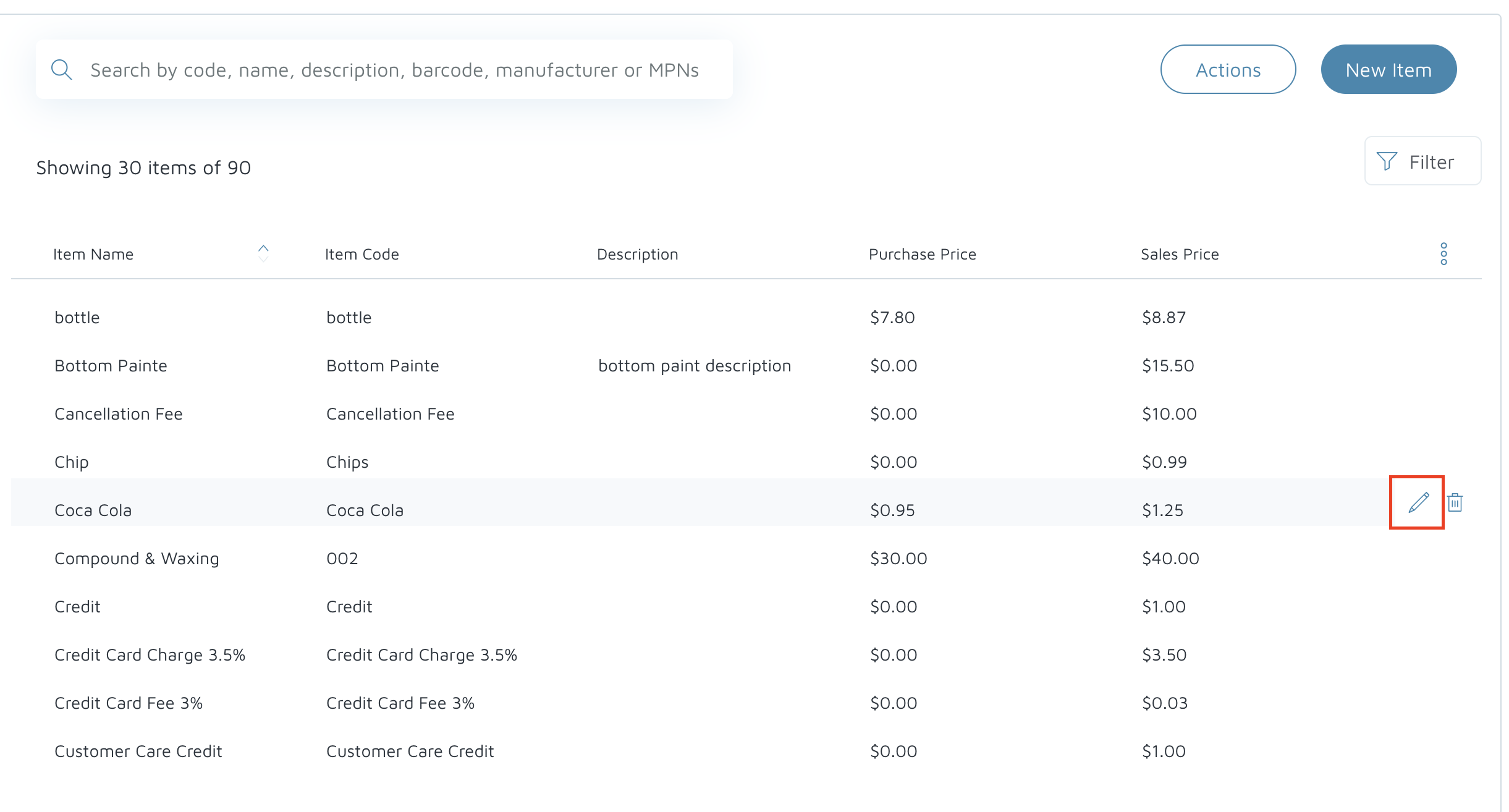 - Find the desired inventory item to edit (use the search bar in the top left corner if needed).