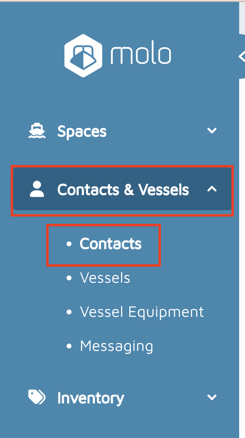 - On the main Molo menu, click on Contacts & Vessels.