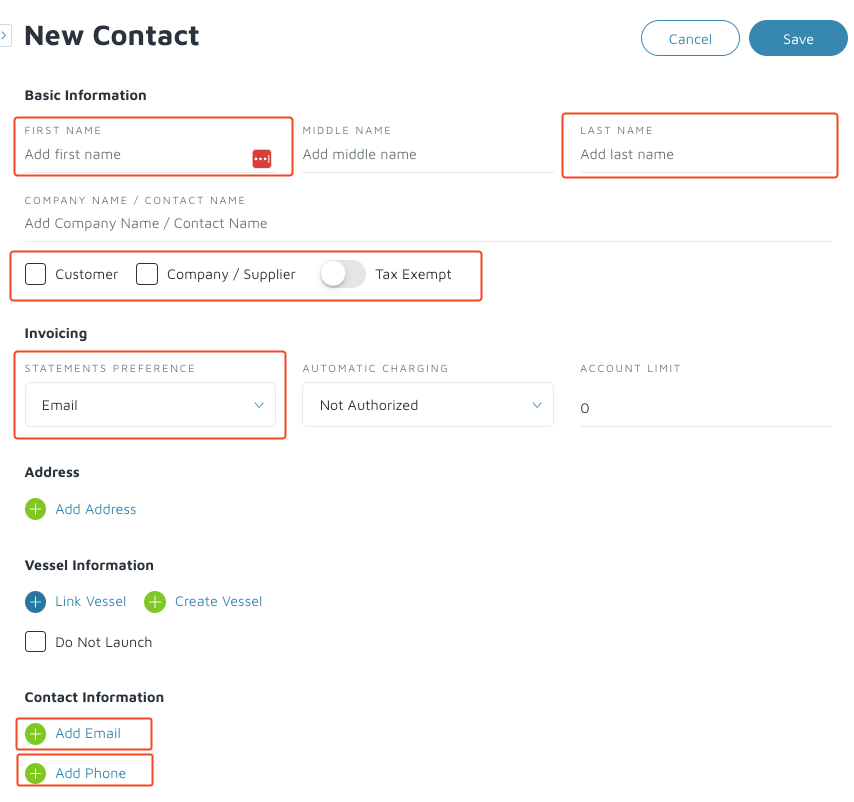 - Contact Type (Customer, Company Supplier, Tax Exempt)