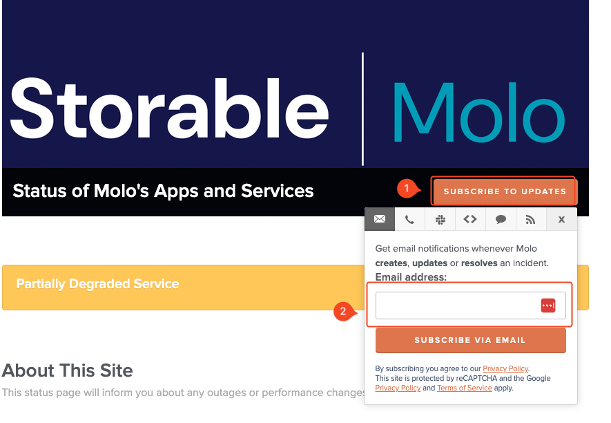 - The client-facing status page is status.getmolo.com. You can also subscribe via email notifications whenever Molo create, updates, or resolves an incident.