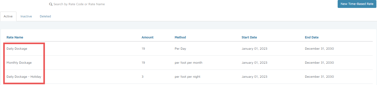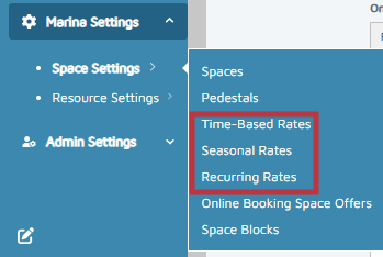 - Click on either Time-Based Rates, Seasonal Rates, or Recurring Rates.