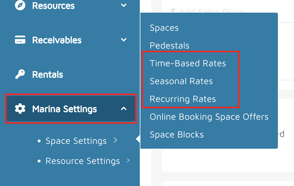 - From the left-hand menu, navigate to Marina Settings > Space Settings.