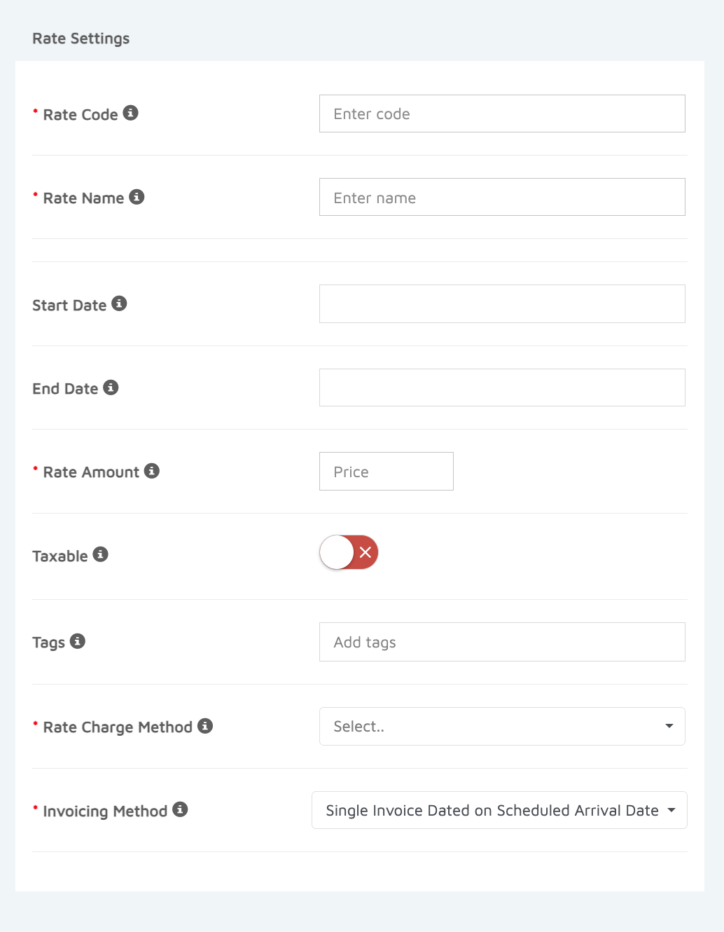 - Enter a Rate Amount (e.g., $50) and choose a Rate Charge Methodfrom the dropdown: