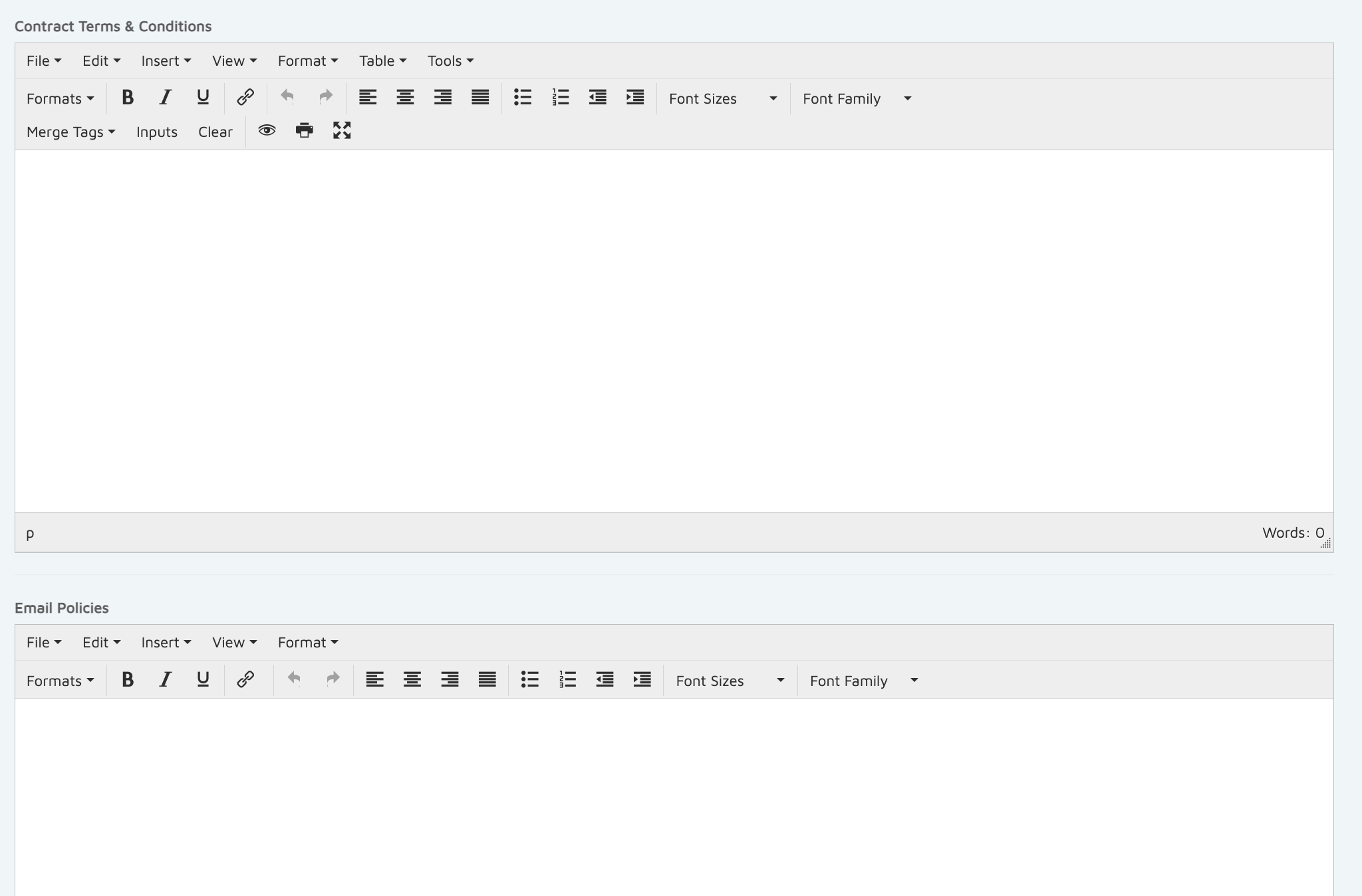 - Optionally, upload or select your Emailed and Printed Terms & Conditions and Online Payment Terms & Conditions: