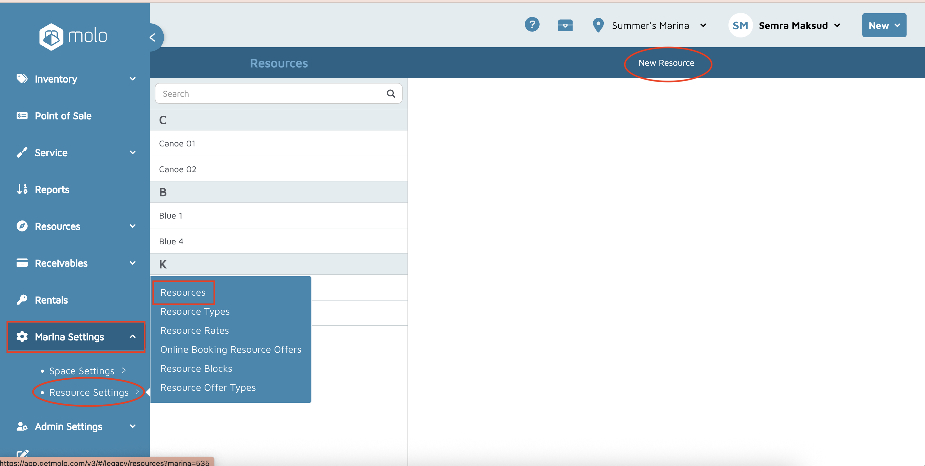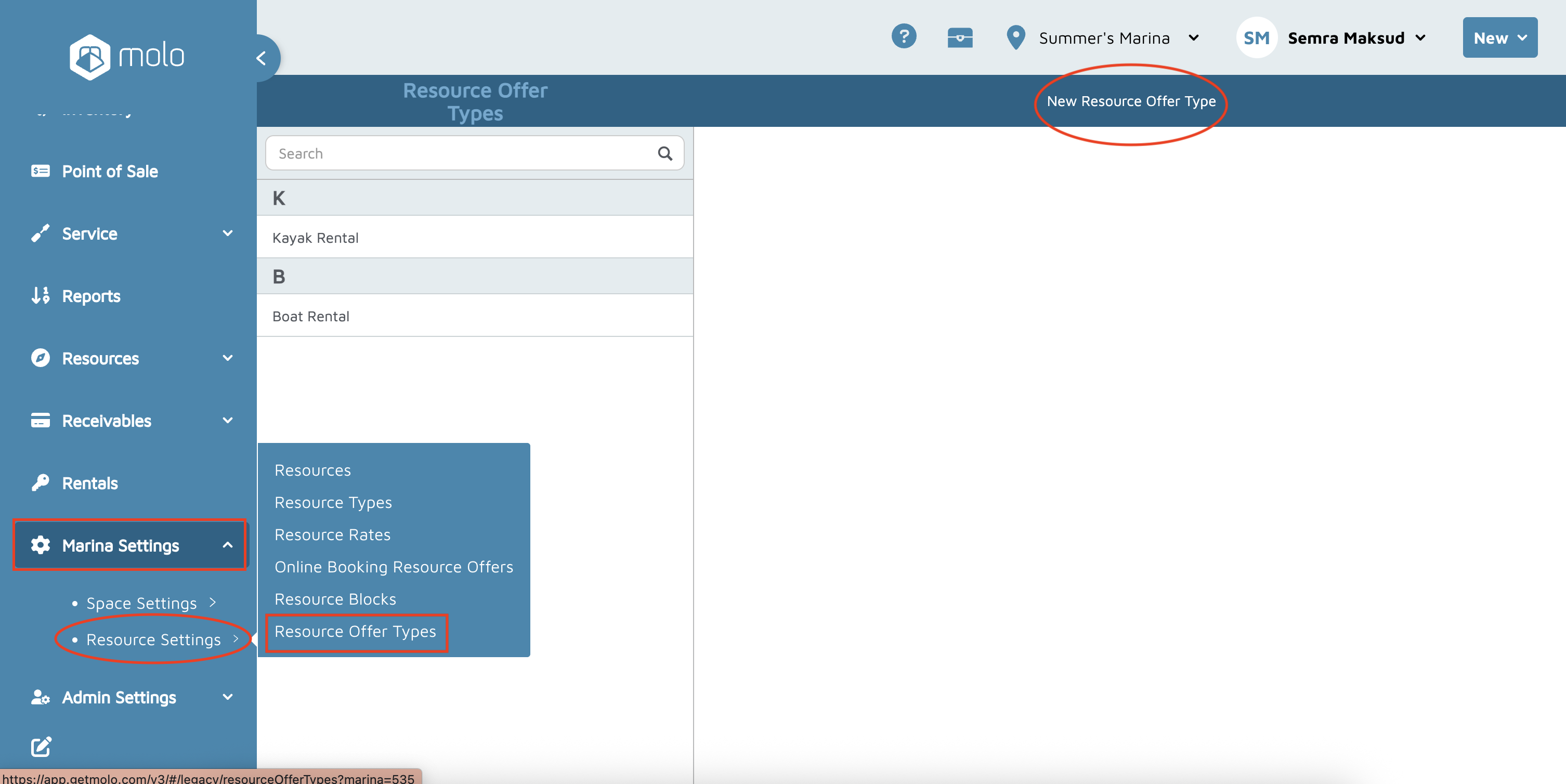 Go to Marine Settings → Online Booking → Resource Offer (or Online Booking Resource).