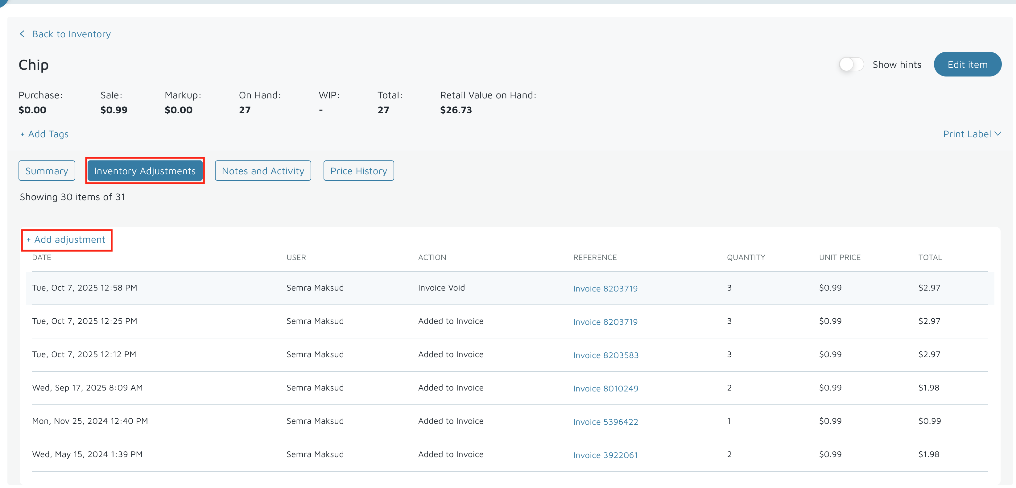 - Click Save to finalize your inventory adjustment.