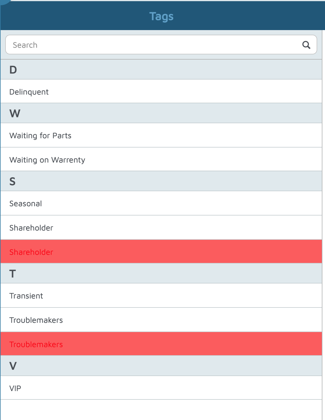 - Review the list of existing tags: