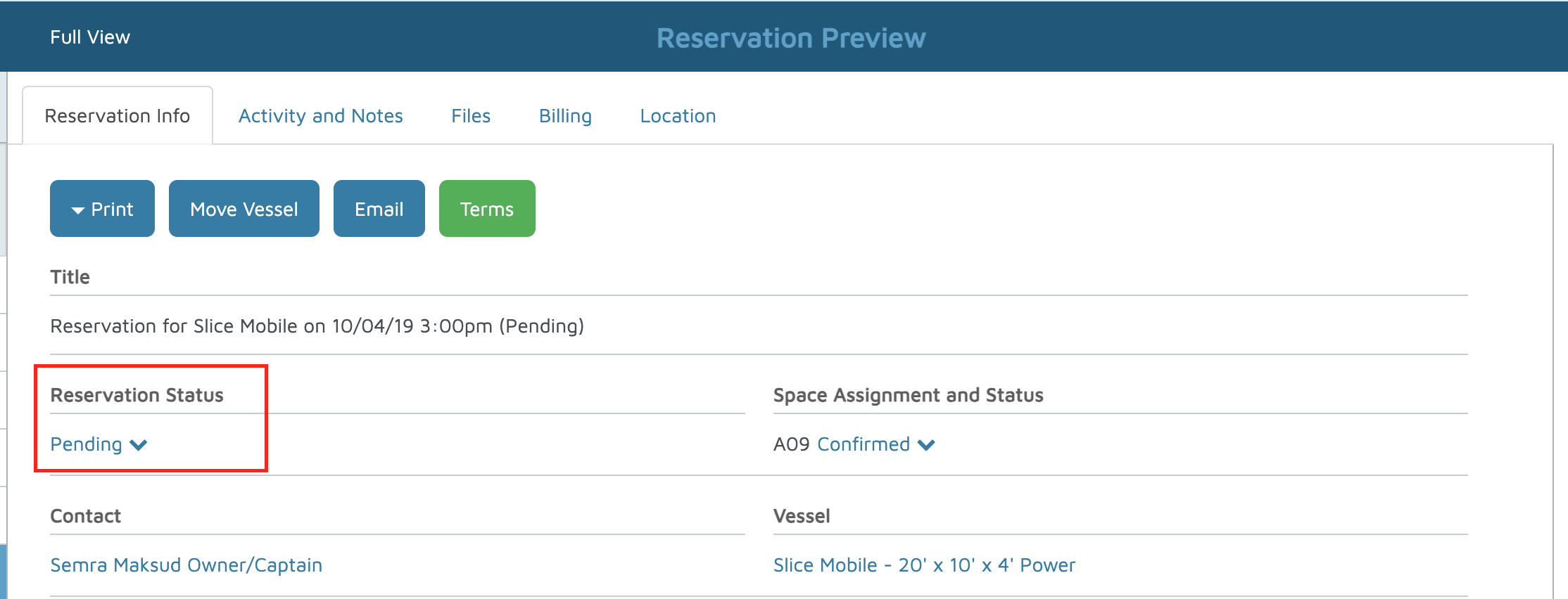 - On the Reservation Preview page, locate Reservation Status.
