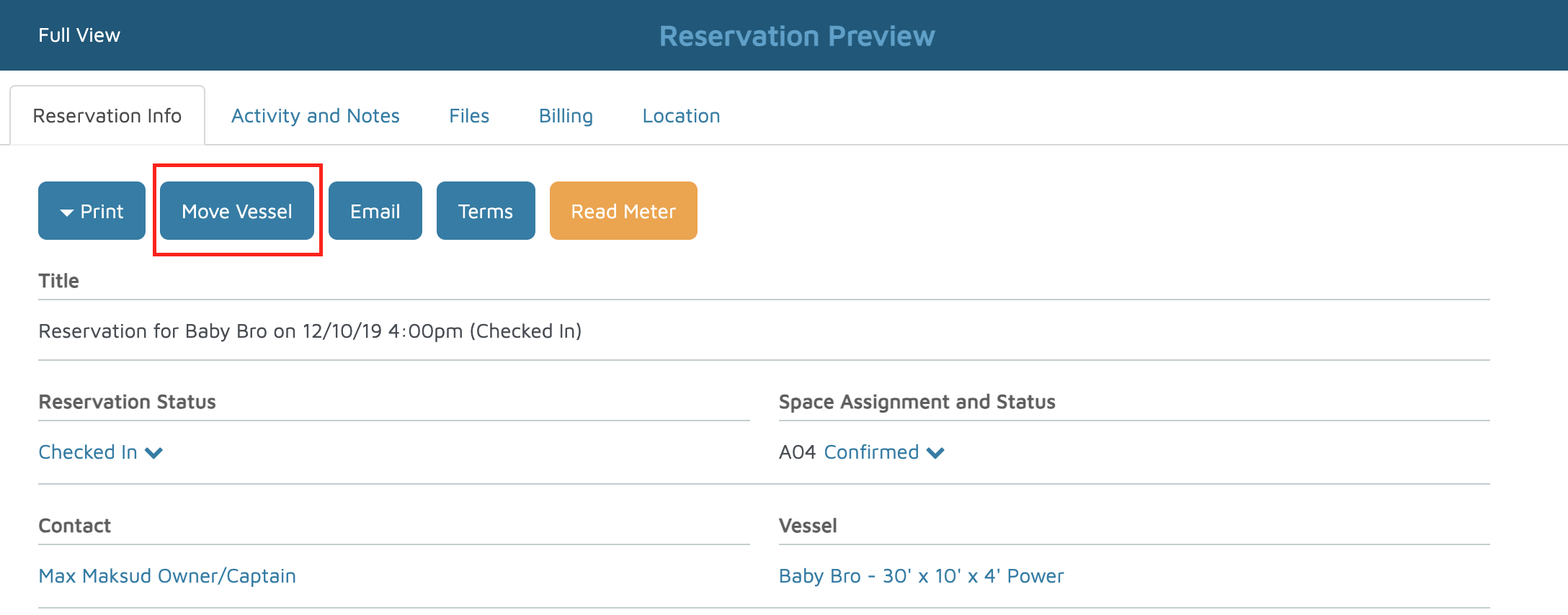 - Click the Move Vessel button.