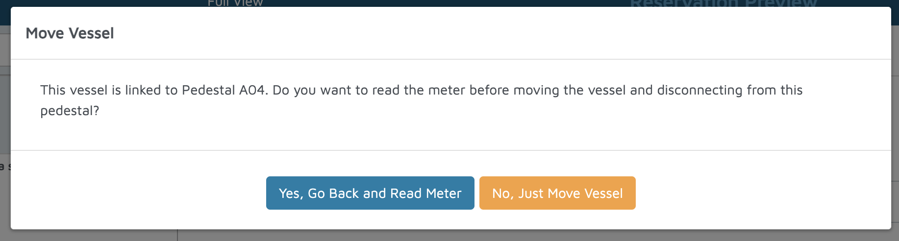 - In the same Move Vessel pop-up, you’ll see a message: “This vessel is linked to Pedestal ‘XYZ’.”