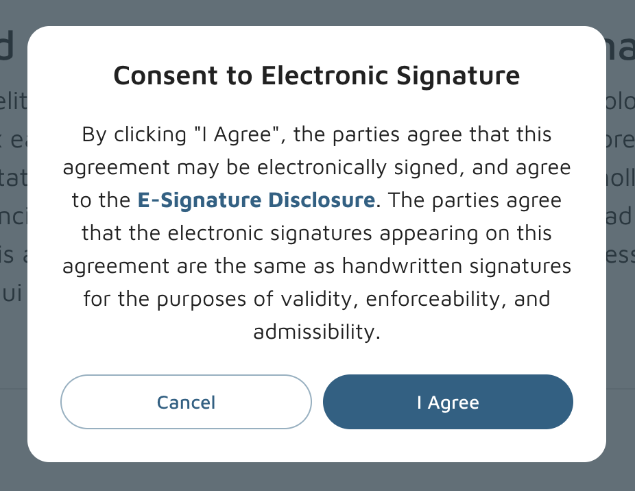From there it would display an E-Signature Disclosure that the user would select I agree to