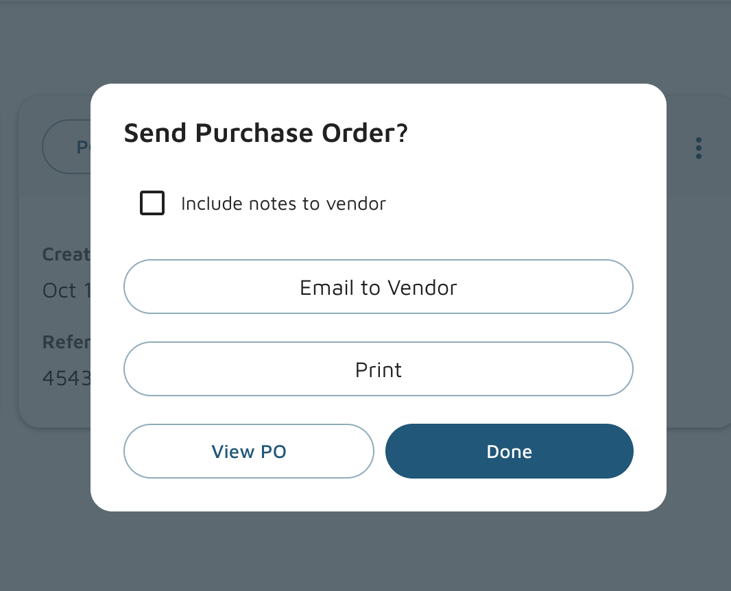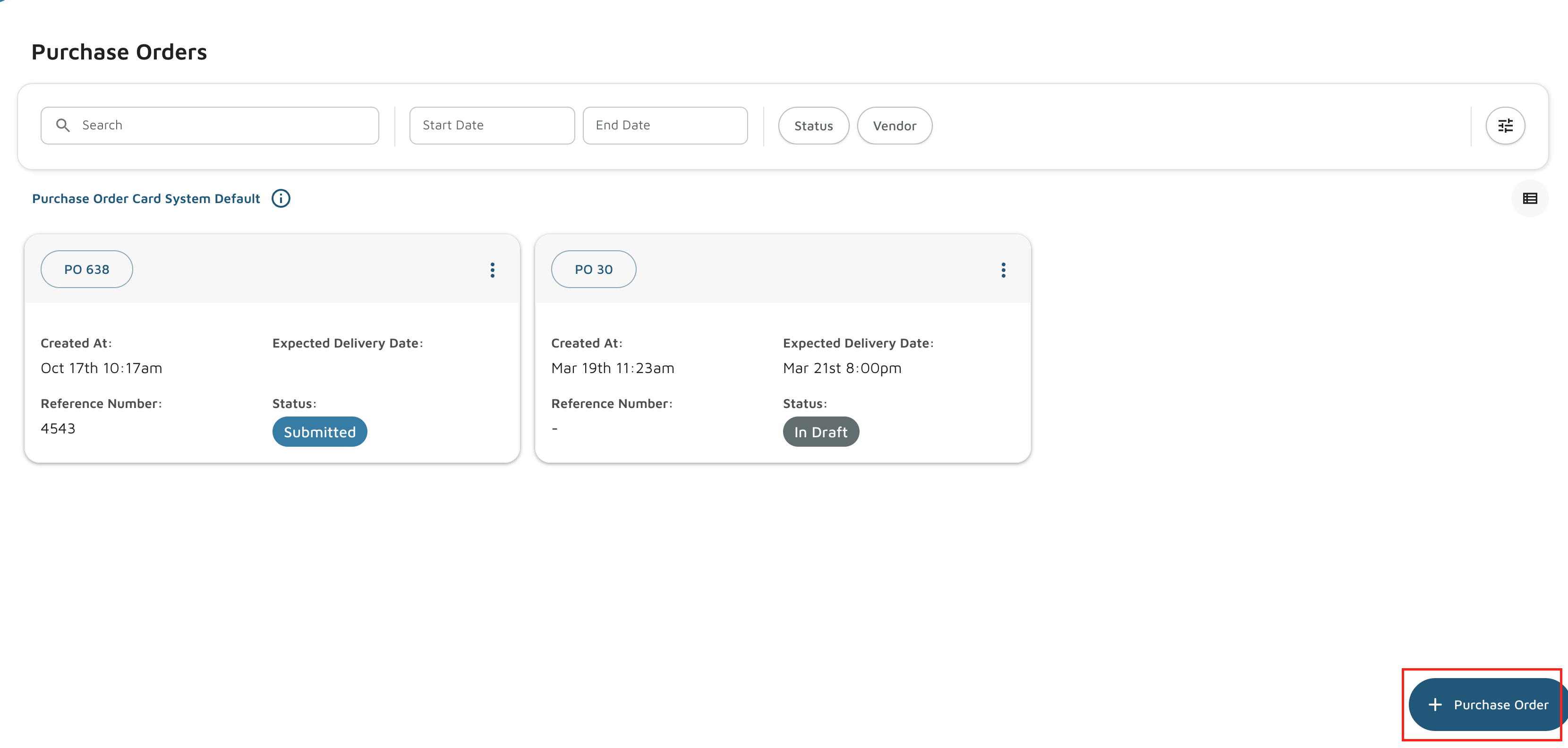 - Click + Purchase Order on the bottom right to create a new purchase order.