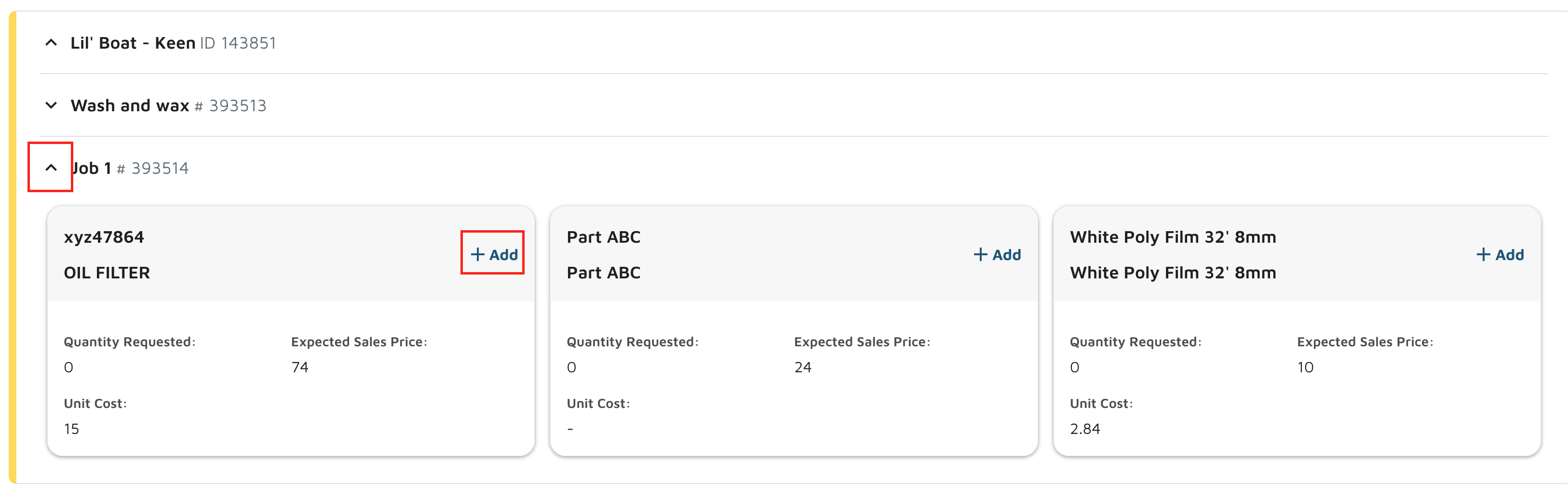 - Select the job that includes the part you wish to link, then click Add.