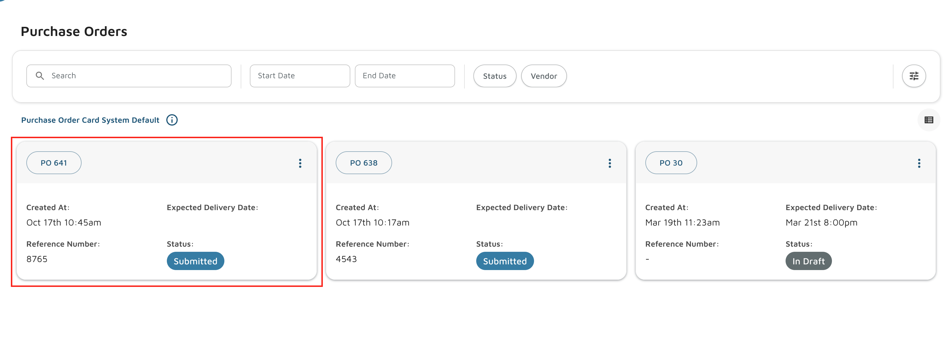 - Navigate to Inventory > Purchase Orders.